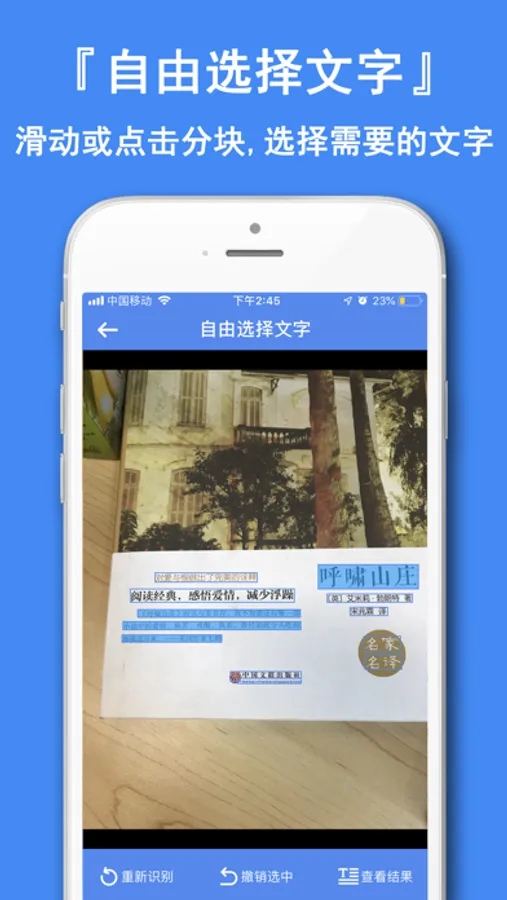 灵活选择:手指点击分块,即可选择需要的文字,想要哪段点哪段(想查看所有文本,不需要按行点选)。
