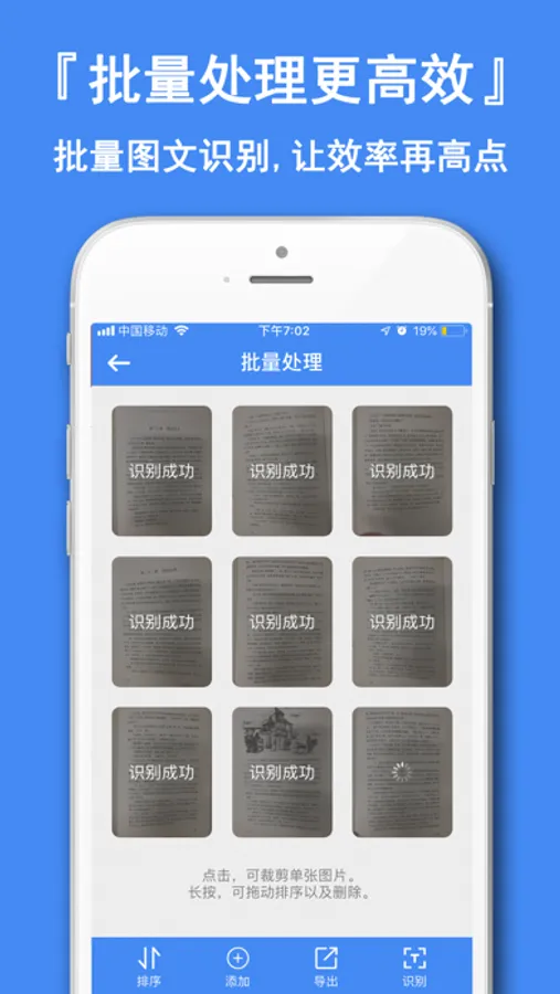 批量识别:多张联系拍摄或多图选择识别,一次支持50张图识别,同类App中的领跑者。