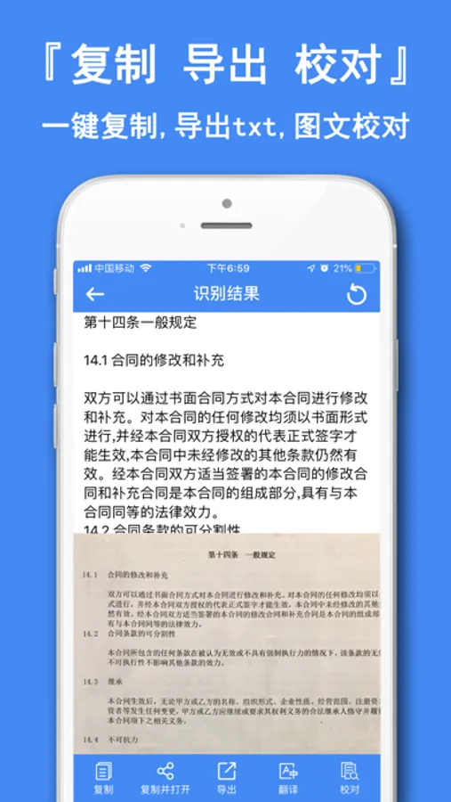 快速校对:图文同屏校对,弥补文字识别中的微小不足之处,主要是针对手写字。