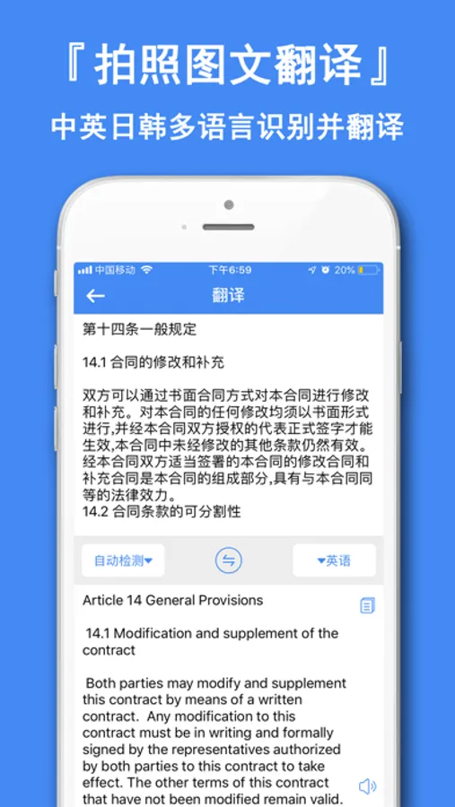 全能翻译:支持中英日韩泰等104国语言翻译,懂得很多,可以带你走的很远。