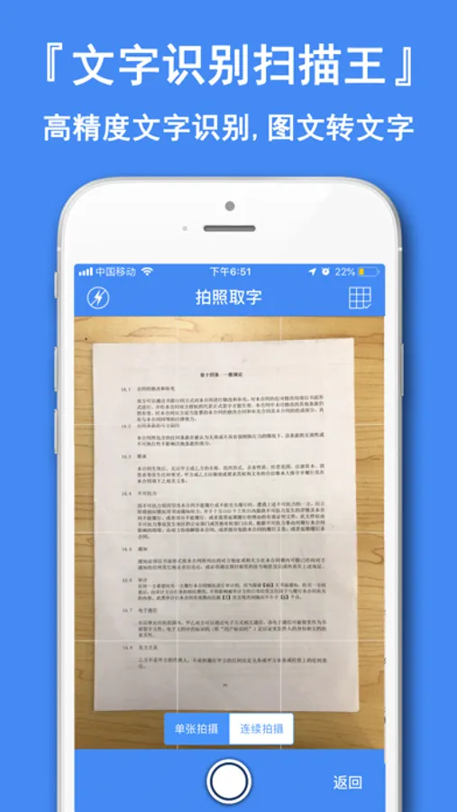 扫描王,一款高精度文字识别扫描工具,智能文字识别,依托最新人工智能图像识别技术,准确图像文本提取,准确率99%,智能排版整理,自动分段。