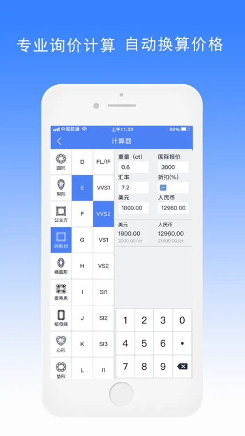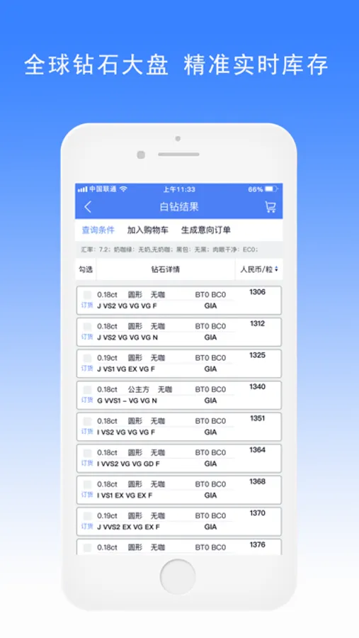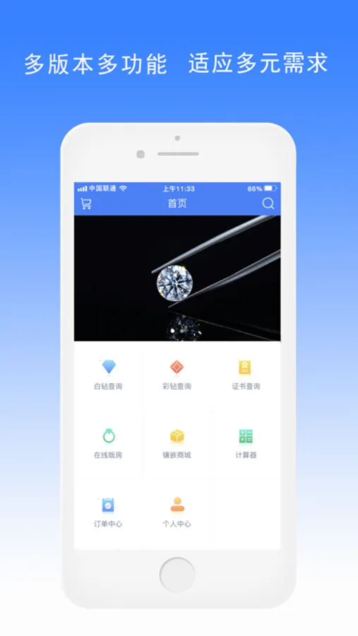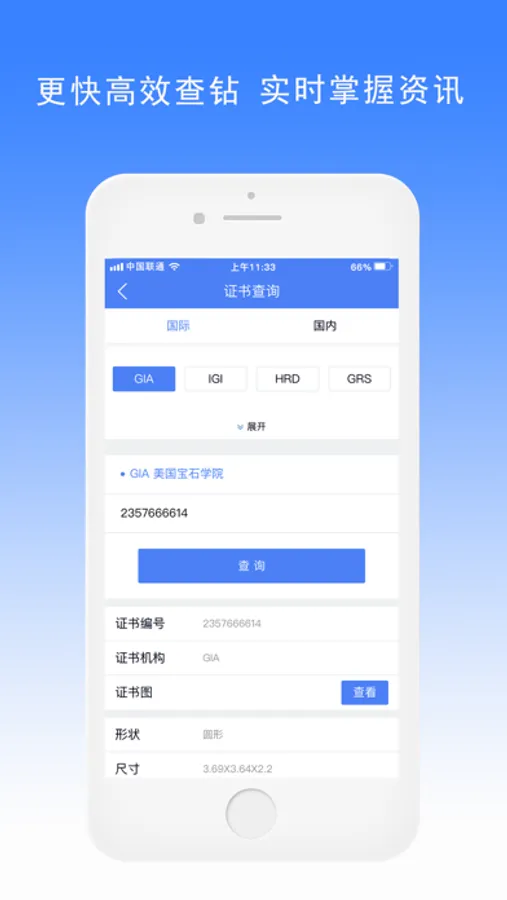 查钻APP,是一款集订单中心、全球裸石查询、证书查询、钻石价格计算器、款式中心、现货商城、个人中心的多功能全球性钻石购销管理系统! 本APP适用于全国各大珠宝批发企业,兼具国际化系统管理,客户信息分级管理,订单资料明细管理,全球最新裸石数据实时更新,用户可自行上传裸石库存和货品库存,国际报价实时更新,极大地降低企业运营成本,优化企业管理,提高办公效率,有利于打造属于自己的珠宝系统。 钻石查询:对接国内外一手钻石供应商,裸石数据实时更新 一键报价:一键加点报价给客户。 款式中心:提供优选款式数据。 证书查询:方便快捷查询到GIA、IGI、HRD等证书。 计算器:实时国际报价,自动计算钻石价格。 个人中心:完善个人信息资料等功能。