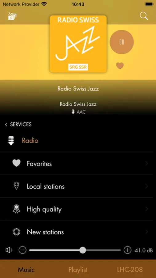 You have access to your local music library, Internet radio stations, as well as online music services.