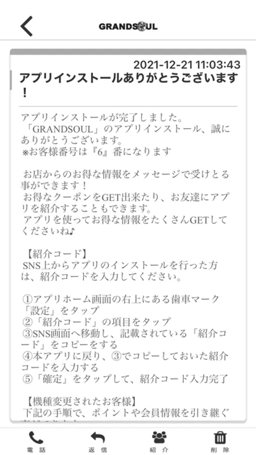 GRANDSOULのアプリをSNSを通じてお友達に紹介する事ができます。