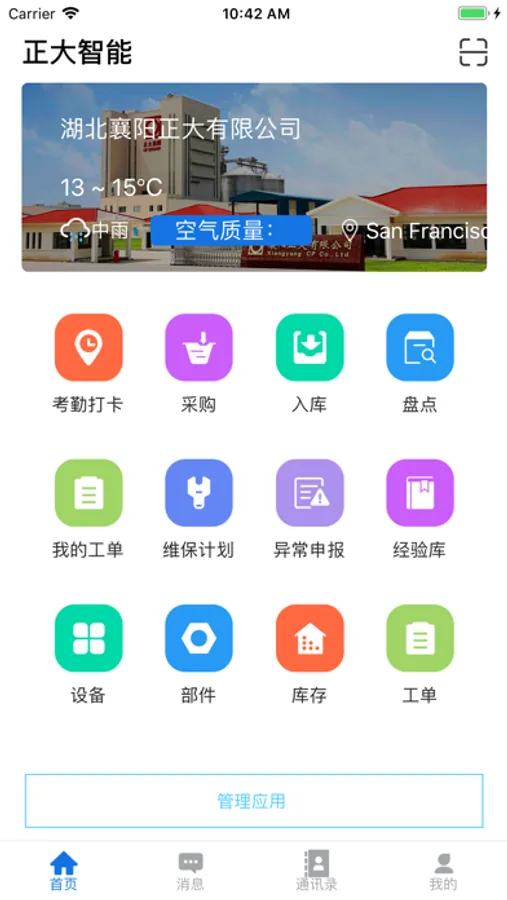 正大运维是为正大集团量身打造的应用,提供标准建设标准化维护管理体系,有效降低管理成本以及维护成本,本应用主要涉及到工厂设备数据的实时监控,工单运维、采购、入库、盘点、设备、部件等功能。