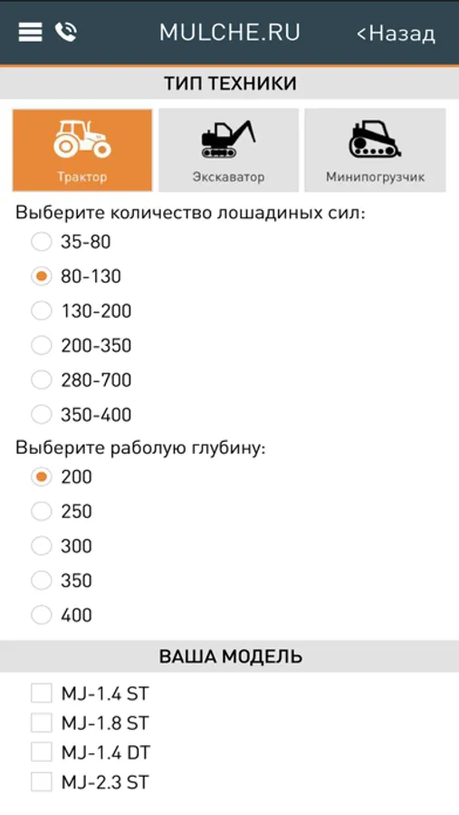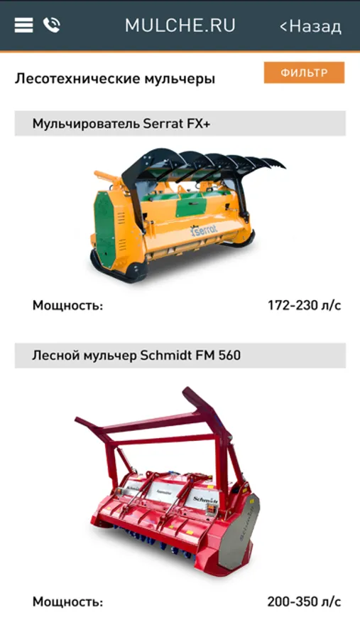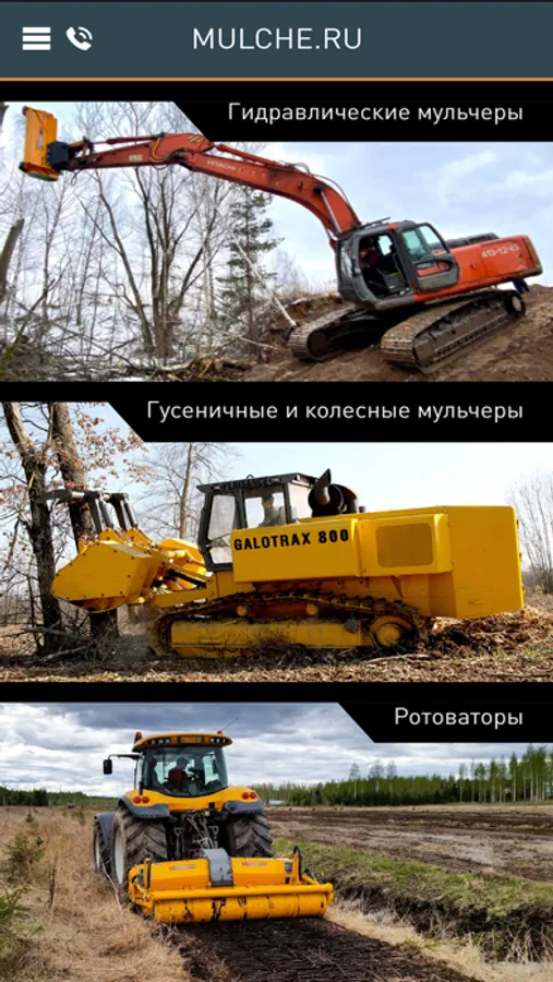 Официальное приложение Mulcher - профессиональный инструмент для подбора ротоваторов, измельчителей, мульчеров, дровоколов, корчевателей и дробилок на все виды техники.