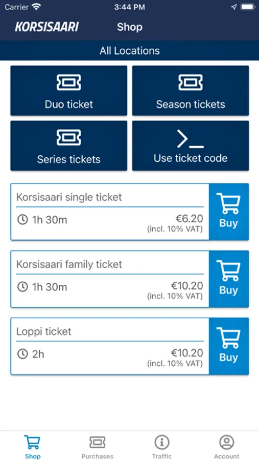 With Korsisaari app it’s easy to buy tickets for public transport operated by Korsisaari companies. You can buy single, multi and season tickets. You can purchase Duo tickets that are also valid in HSL (Helsinki public transport) area.