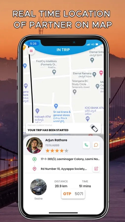 Select the most convenient cab option based on your needs like early arrival or low cost and then book your ride in just one click from the app itself. Get your booking details like Partner information, his phone number and Vehicle registration number, etc. almost instantly. You can also cancel your ride just by one tap without any hassles. However, cancellation fee will be applicable for delay beyond 5 mins of booking acceptance.