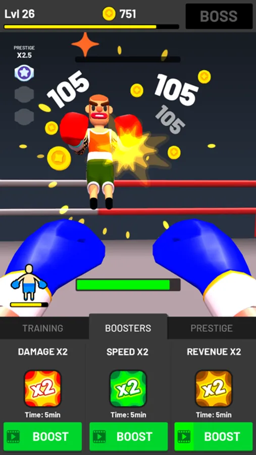 Idle game about boxing! Train hard to upgrade your boxer and prove you're the King of the Ring!