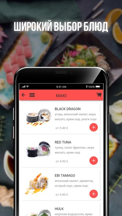 - Personal account with your favourite dishes, order history and your shipping addresses