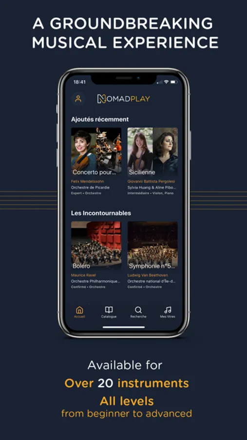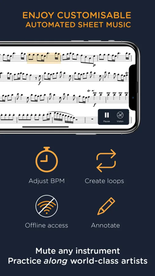 Discover our interactive sheet music and play the instrument of your choice accompanied by world-class artists and orchestras!