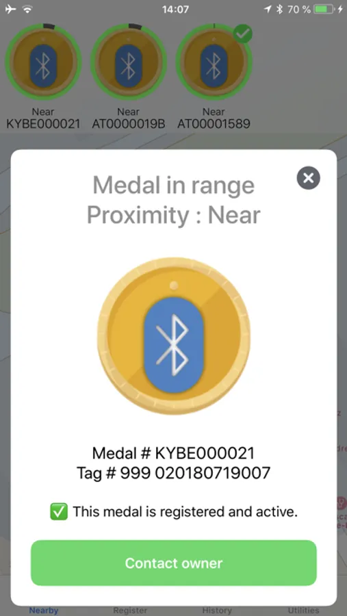 • Scan for nearby medals, get alerts when medals are ranging in, along with proximity estimation based on signal strength and mark the medal location on the map