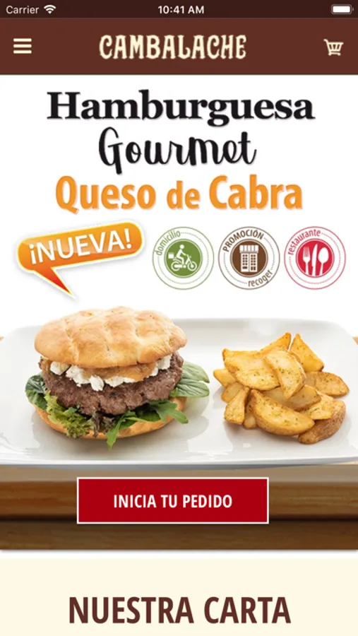 Disfruta del amplio menú de Restaurantes Cambalache en tu móvil. Con la aplicación de Restaurantes Cambalache puede realizar tus pedidos para que te los llevemos a Domicilio o para Recoger en tu restaurante favorito con nuevas comodidades: