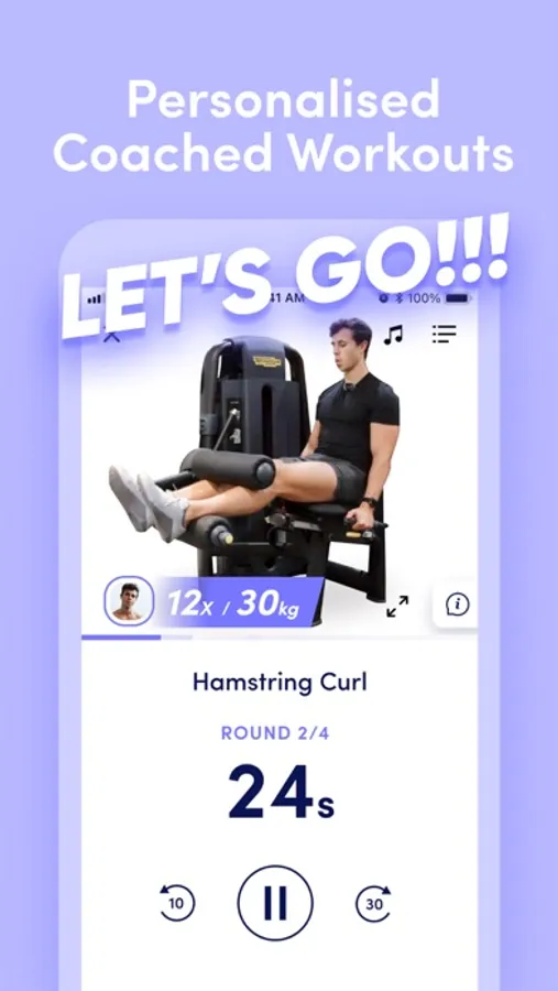 - Press play when you are ready in position, our virtual gym trainer will come to live and coach you through all the sets to give you the best performance