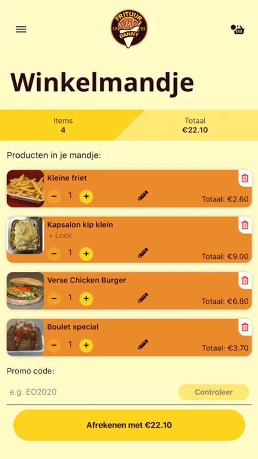 Waar u ook bent, met de app van Frituur Danny kan u zonder zorgen bestellen uit het uitgebreide assortiment aan frietjes, snacks, ...
