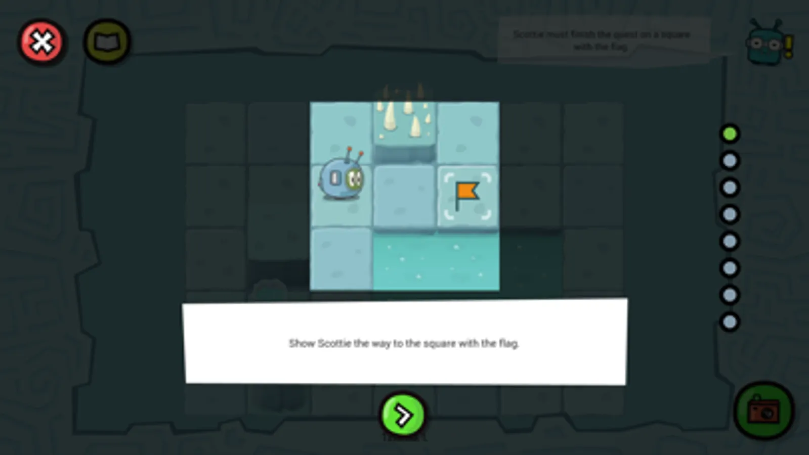 Scottie’s new adventures in outer space. Scottie’s journey was interrupted by an unexpected problem with his spaceship. The friendly alien’s fate depends on you! Help Scottie collect crystals that fuel his spaceship and resume his travels, while discovering the foundation concepts of coding and algorithmic thinking.