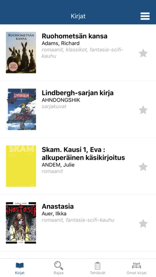 Kirjastot päivittävät kirjalistoja muutaman kerran vuodessa. Sovelluksen valikossa on Päivitä kirjalista -painike, jolla saa ladattua uudet kirjat laitteeseen.