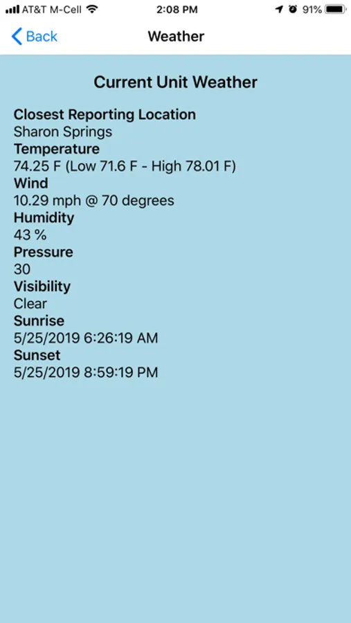 Among the features available to make easy use of the data is a left to right swipe feature on each row that provides access to a zoom-able hybrid map of the tract, routing and current weather information.