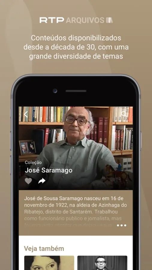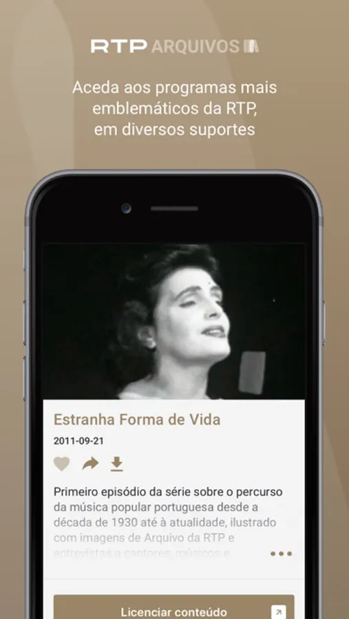 A aplicação RTP Arquivos é a APP de acesso público oficial aos arquivos audiovisuais do serviço público de rádio e televisão.