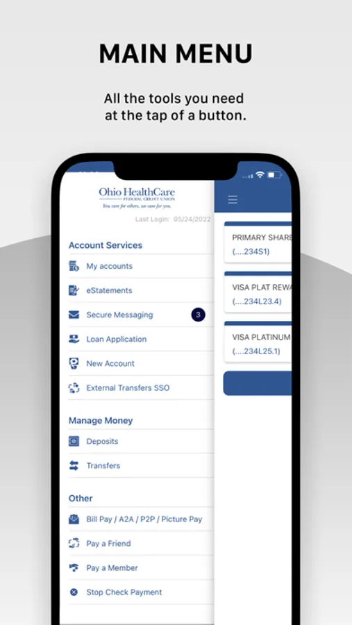 Our Mobile Banking application offers you access to your accounts 24/7 all from the screen of your mobile device. You can check account balances, view transaction history, transfer funds, deposit checks, send and receive secure messages, and much more. This free app is available to members of Ohio HealthCare Federal Credit Union.