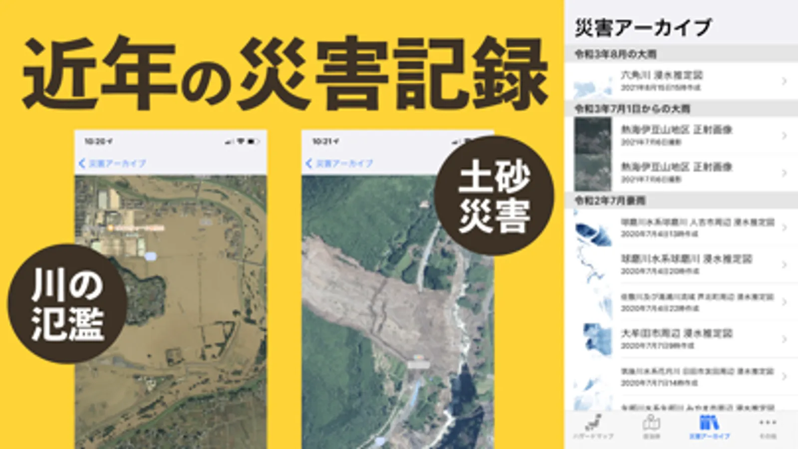 全国自治体発行の詳細なハザードマップへのリンクを搭載。