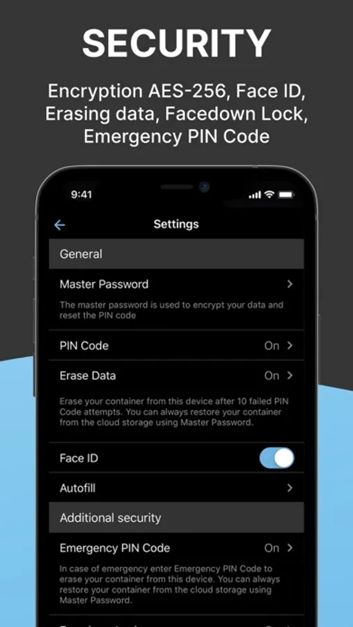 We do not store your master password. Any access to your data is carried out using a unique personal secret key generated based on your master password and stored in iOS keychains. No one else will be able to receive or read this data either during its transmission or in the storage.
