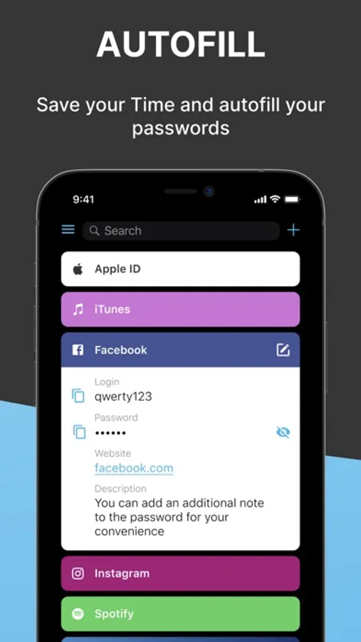 • Autofill your passwords quickly and save you time. (Available on iOS 12)