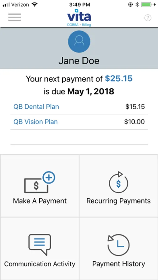 Stay up to date and worry free with the Vita COBRA & Direct Billing App! Manage your plans 24/7 through the intuitive design and navigation while on the go. Powerful features of this app include (if supported by your account):