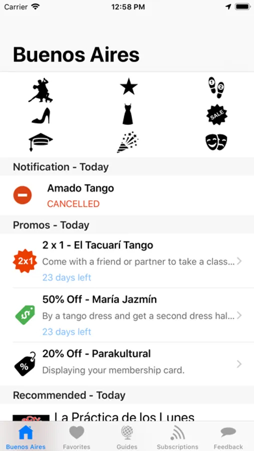 You’ll always be on top of the tango scene with notifications of changes and cancellations.