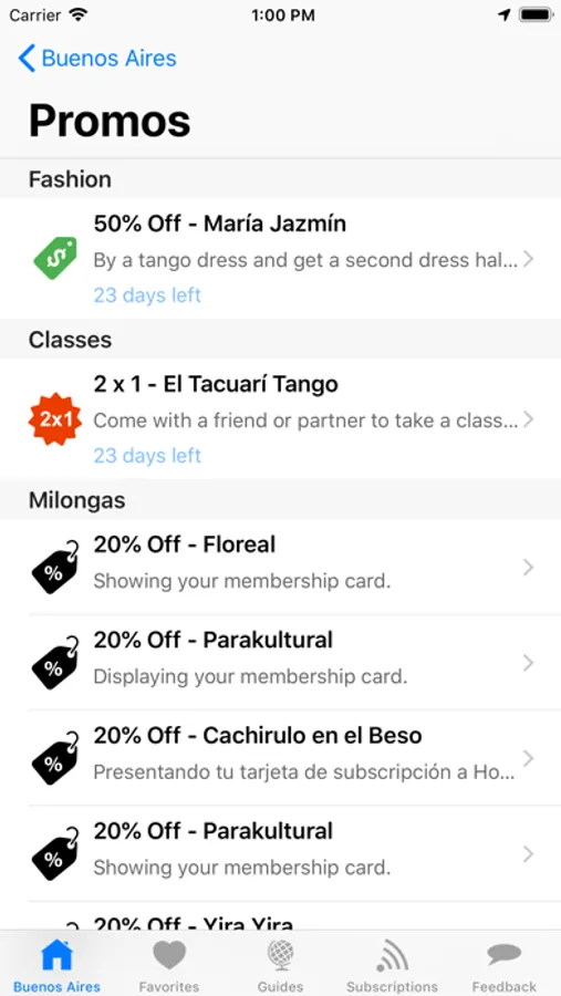 • Tango Guide BA (Monthly) - Up-to-date tango information in Buenos Aires, plus exclusive benefits for subscribers for $1.99 per month. Cancel anytime.