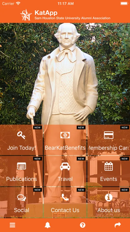 The KatApp brings the power of a Sam Houston State University Alumni Association membership to your mobile device. Read up on the latest campus news, or find a SHSU alumni event to attend near you. Members can also access a mobile membership card, access benefits and discounts on the go, and purchase a membership in two easy steps. Never feel disconnected from SHSU again with the KatApp - the app for you to stay connected and Bearkat Proud!