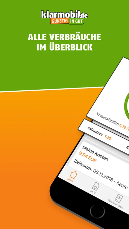 • Für die Nutzung der App einfach mit denselben Daten wie auf der Website (klarmobil.de) anmelden. Falls noch kein Online-Konto besteht, einfach direkt in der App registrieren.