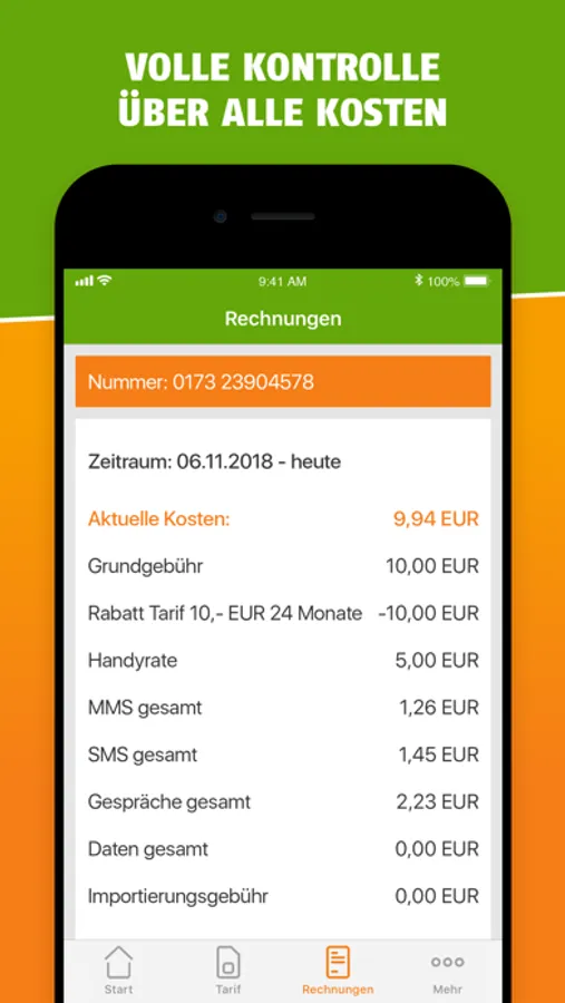 • Detaillierte Einblicke in Daten-, Telefonie- und SMS-Verläufe bekommen.