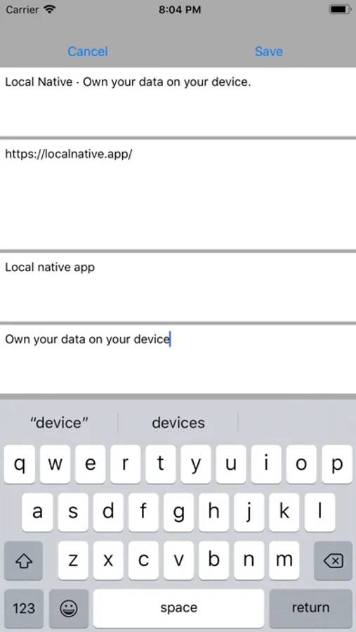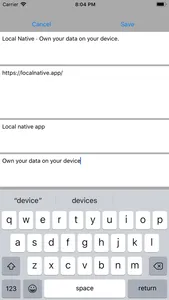 Local Native App is a cross-platform tool to save and sync your notes in local SQLite database without going through any centralized service.