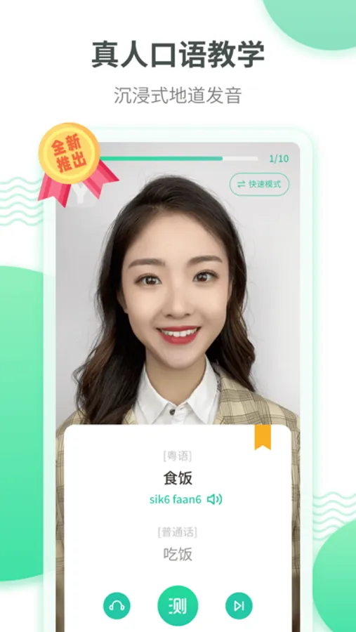 粤语教师真人出镜授课,内容覆盖日常生活、港剧台词、粤语歌曲等主题,通过真人互动教学学习发音口型,让你沉浸式学习地道粤语!