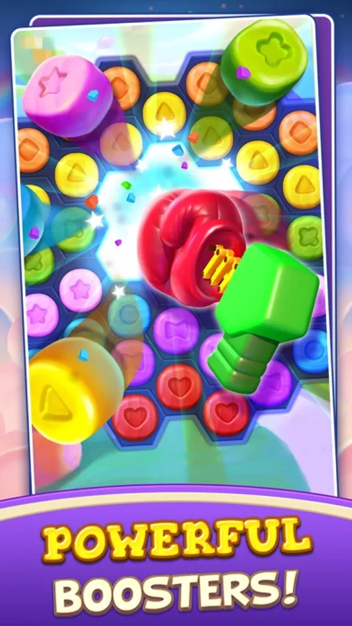 Try TOY POP ADVENTURE, the SIX DIRECTIONS Match 3 Puzzle game with bee hive shaped hexa puzzle blocks!