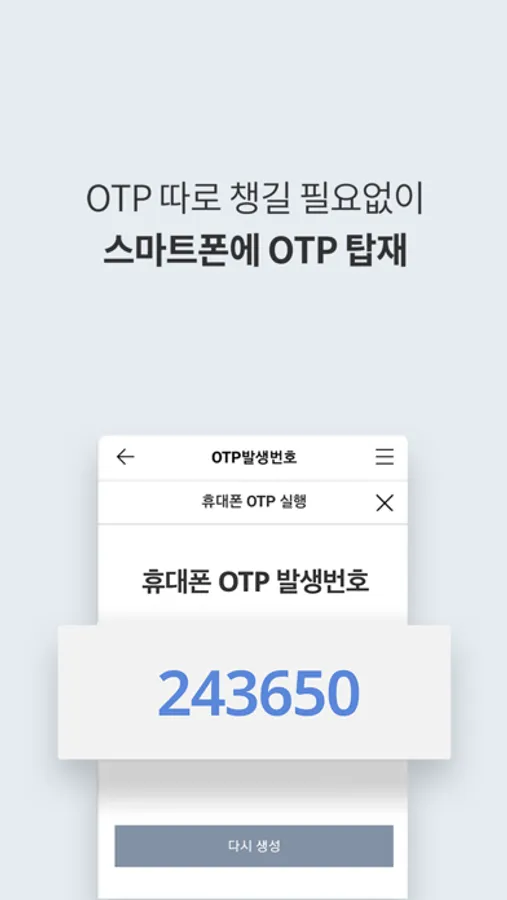 - 번거로운 OTP 기기 없이 스마트폰 속 OTP 로 거래 가능