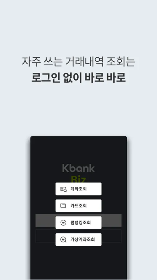 - 자주 쓰는 거래내역 조회는 로그인 없이도 바로 확인 (사전 등록 필요)