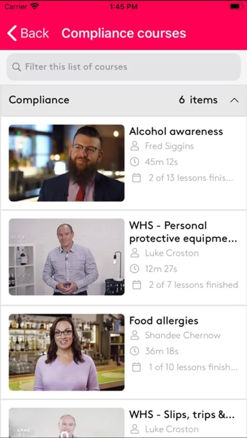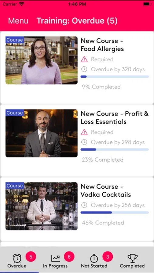 • Compliance: alcohol safety, workplace health and safety, food allergies, workplace bullying, etc.