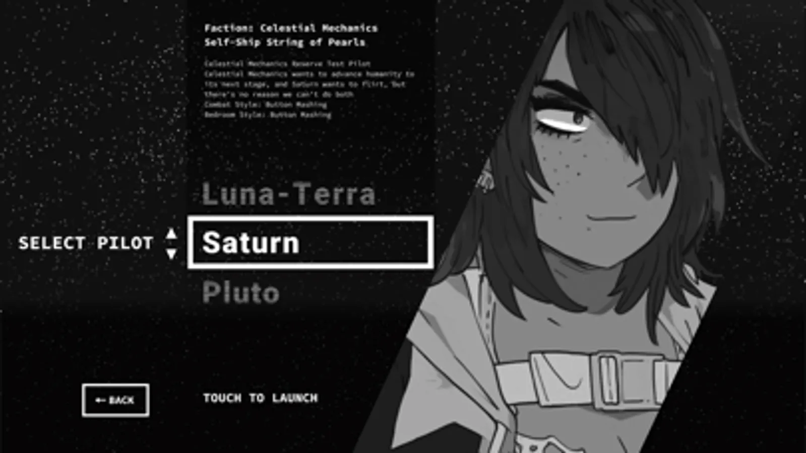 Experience the story from the perspective of three pilots bound by fate and gravity: veteran ace Luna-Terra, overwhelming super psychic Pluto, and hacker-hijacker Saturn as they fight across three different factions in an eight day war. Your choices decide if they become clandestine lovers or passionate rivals, and which faction’s ultimate plan for humanity’s fate in space and beyond will be realized. Win for your ideals or lose for love, and grasp heaven in your hands.