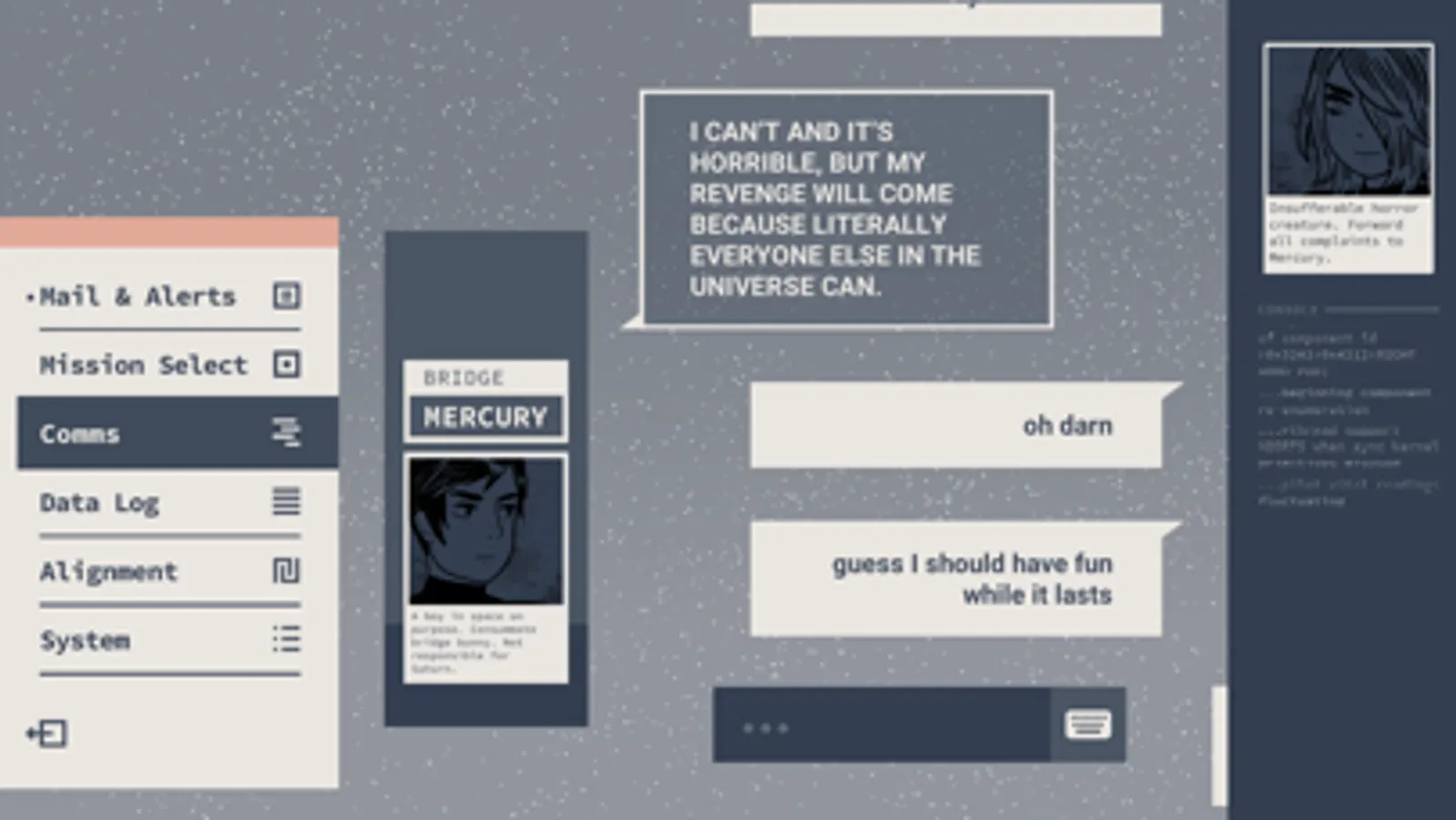 Co-Creators Aevee Bee, Founder of Mammonmachine: ZEAL and critic of games by and for weirdos, and illustrator & cartoonist Mia Schwartz reprise their roles as writer and artist respectively, Alec Lambert (We Know The Devil) returns with a surreal and cosmic soundtrack of lo-fi, deep tech electronics and Christopher Simon joins the team with gorgeous retro UI aesthetics. Developed in collaboration with Pillow Fight.