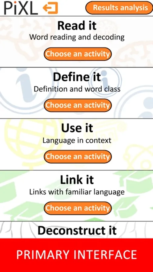 Both versions of the app build a better understanding of key vocabulary through games developed around the following five areas: