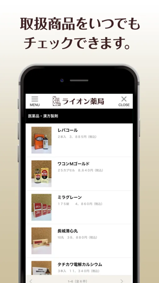 ●メニューから、お店で取り扱っている商品をいつでもチェックできます。