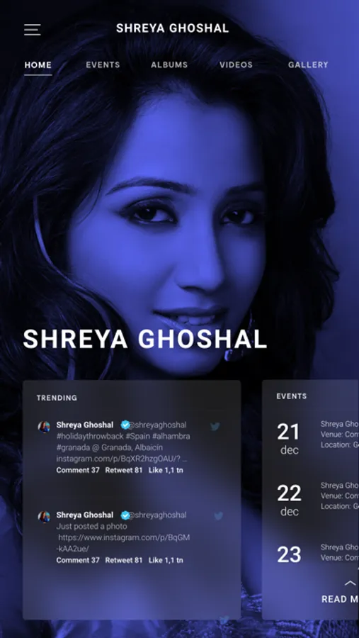 This app is Shreya Ghoshal's Fans App to keep track all about the latest happenings in her life. Be her latest tweets, social media, music videos, awards or recognition.