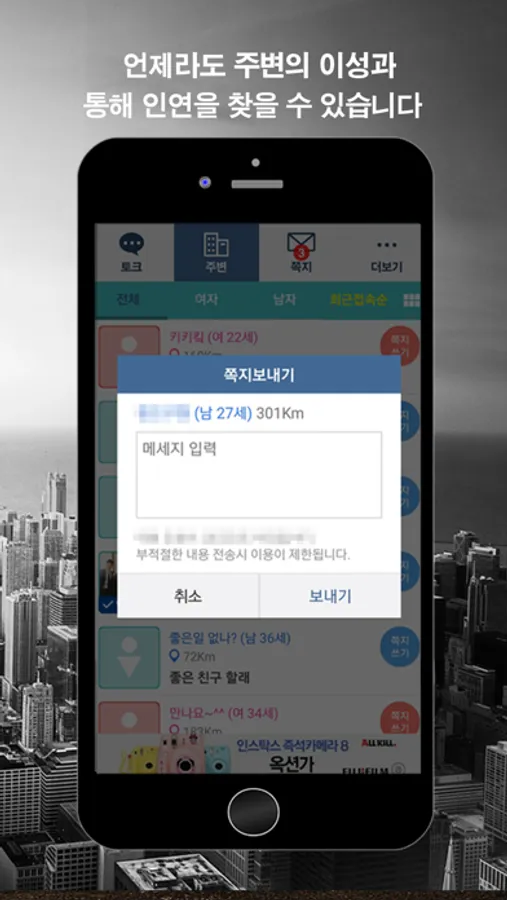 3. 빠른 이성과 대화 : 본인이 원하는 가까운 이성과 대화가 가능합니다