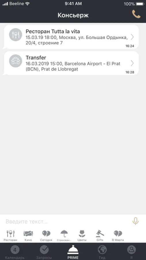 • Быстрый доступ к вашим бронированиям (авиаперелеты, рестораны и т.п.)