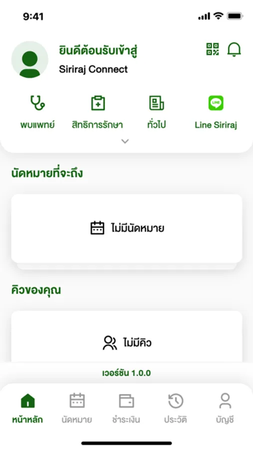 Siriraj Connect is an application to present the good experience in services to customers of Siriraj Hospital. The General information and public relations information are provided by this application. The customers can access the appointment information; queue system alerts customers of upcoming appointments and customer privilege self-service. Siriraj Connect can be sent a customer Pre-authorization document by mobile devices. Siriraj Connect is enhanced comfort and reveals the potential of digital hospital. The customers were satisfied with the service of the Siriraj Hospital.