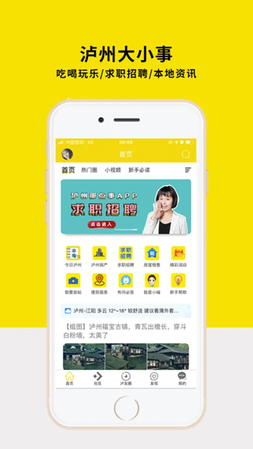 泸州那点事官方APP,我们将为500万泸州人提供:泸州热点资讯、同城交友、房屋租售、求职招聘、楼市装修、汽车旅游、吃喝玩乐购、商家打折优惠等丰富功能,泸州人都在用的手机客户端。