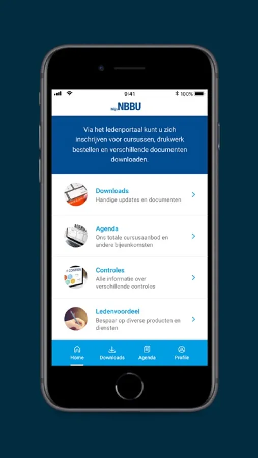 De NBBU heeft ter ere van zijn 25-jarig bestaan speciaal voor zijn leden de MijnNBBU-app ontwikkeld. In deze app kunt u als u ingelogd bent de downloads bekijken en downloaden, u inschrijven voor de cursussen en trainingen en het ledenvoordeel ontdekken. Daarnaast kunt u uw gegevens wijzigen en als u beheerder van de organisatie bent de controles invoeren.