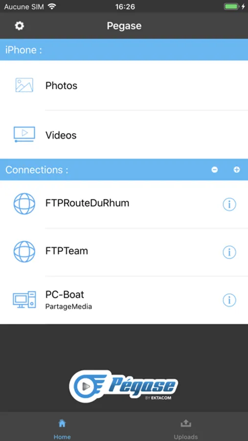 L'application pégase vous permet d'envoyer vos vidéos et photos depuis votre iphone.